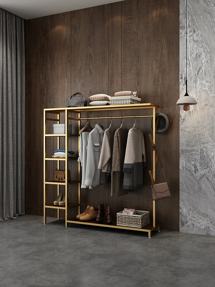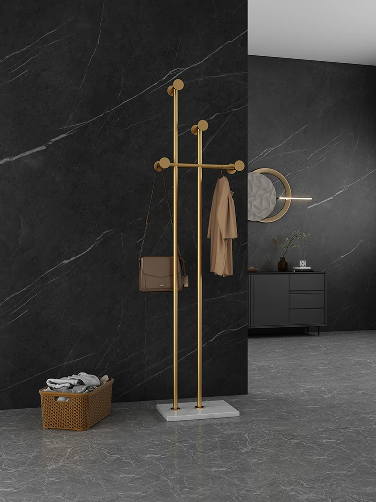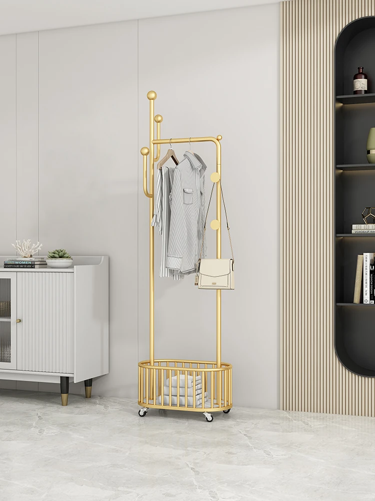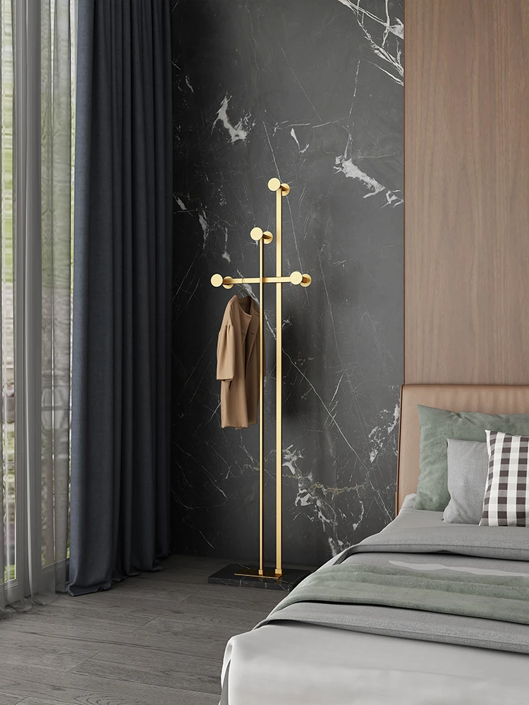 イタリアンスタイルの軽奢玄関ハンガーラック - 落地式で、寝室やリビングにも最適!おしゃれな民宿やホテルにもぴったりなデザイン。お客様を迎える空間を一層引き立てる、機能的でスタイリッシュな衣類掛けです。