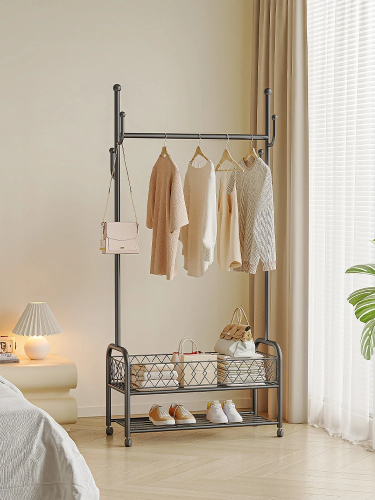 新居にぴったり!スタイリッシュなフロアコートハンガー - ベッドルームやリビングに最適なシンプルな衣類ラック。移動可能で収納力抜群、毎日の整理整頓をサポートします!