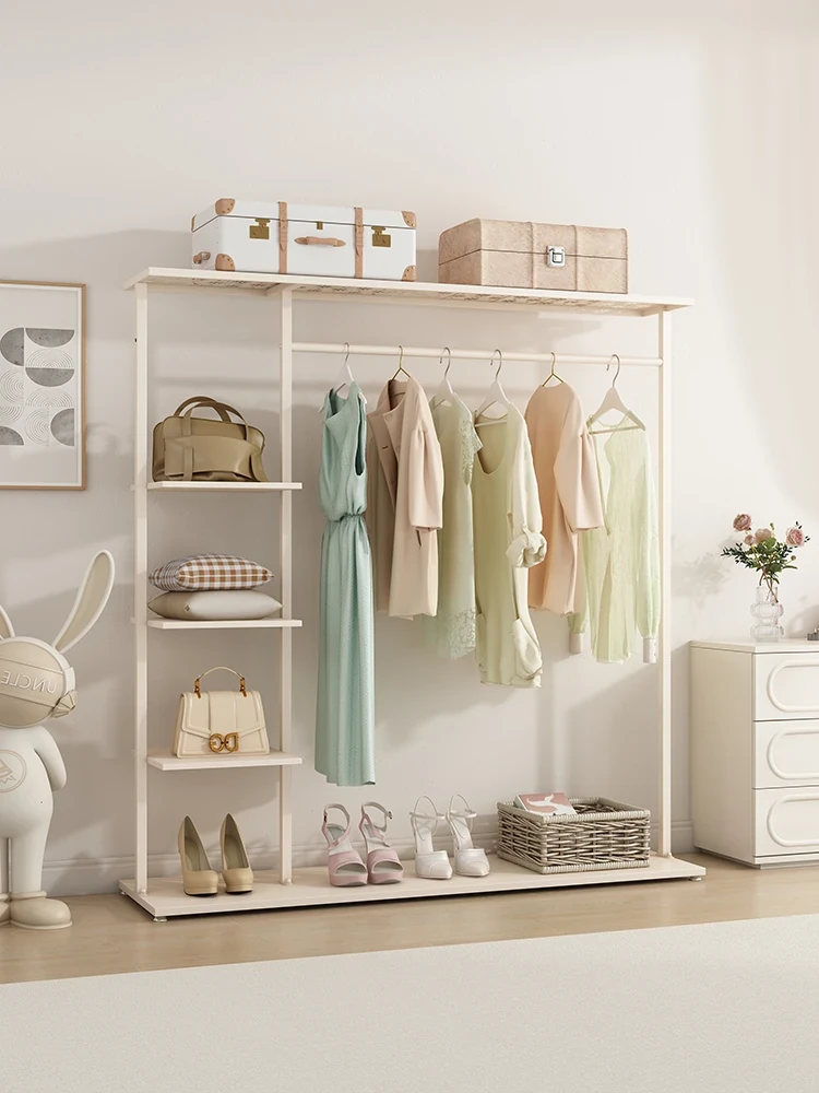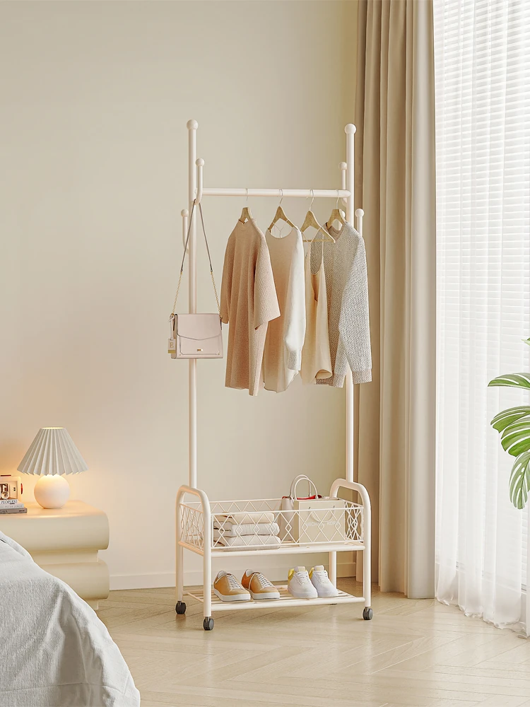 クリーム風デザインのキャスター付きコートハンガー、家庭用リビングルームに最適なスタンド式衣類収納ラック。シンプルで使いやすい、寝室にもぴったりな落地型ハンガー!おしゃれに衣類をスッキリ収納!