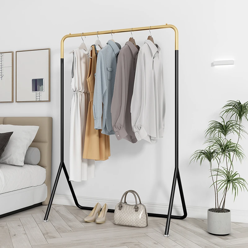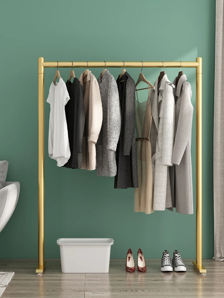ラグジュアリー感漂うスタンド式衣類ハンガー - 寝室やリビングに最適なシンプルでスタイリッシュな収納ラック!おしゃれなデザインで衣類の整理整頓も楽々。あなたの空間を華やかに演出します!
