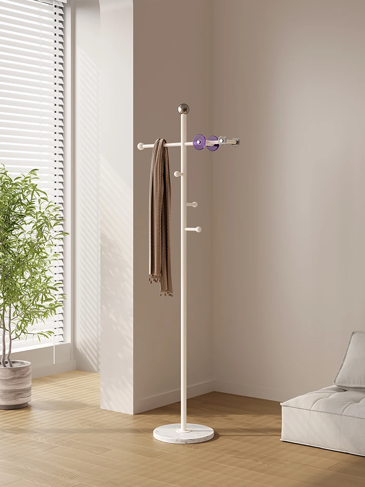 クリーム風デザインのフロアハンガー - おしゃれな室内用コートラック!省スペースで使いやすく、バッグやジャケットをスタイリッシュに収納。あなたの寝室をセンスアップするアイテム!