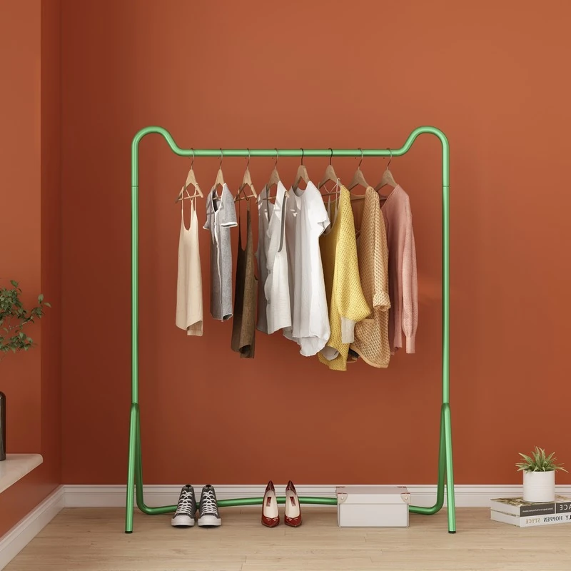北欧風のライトラグジュアリー衣類ハンガー - おしゃれでシンプルなデザイン、寝室やリビングにぴったり。クリエイティブなグリーンカラーで、洋服を美しくディスプレイ!収納とインテリアを両立する理想のアイテムです。