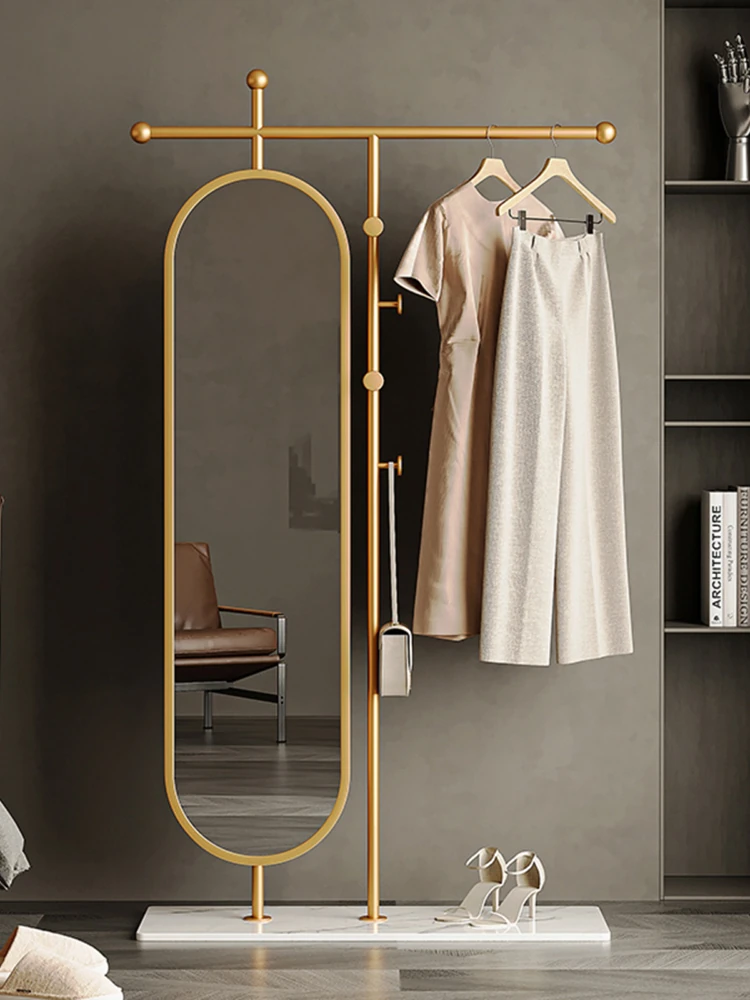軽やかな高級感のある衣類ハンガー&鏡一体型!回転可能な全身ミラー付き立て掛け式ハンガー。寝室にぴったりの多機能衣類収納で、スタイリッシュな空間を演出します。