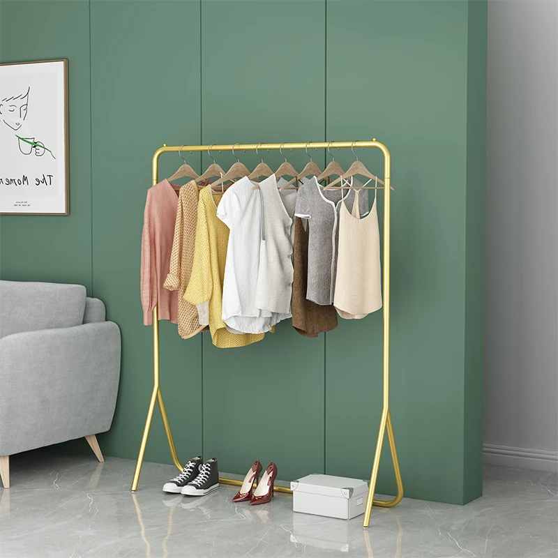 バルコニー用家庭用物干しスタンド、寝室用の地面設置型金属ハンガーラック、部屋の収納に最適!ベッドサイドにぴったりな衣類掛けの必需品!シンプルでスタイリッシュなデザインで、おしゃれに衣類を整理しよう!