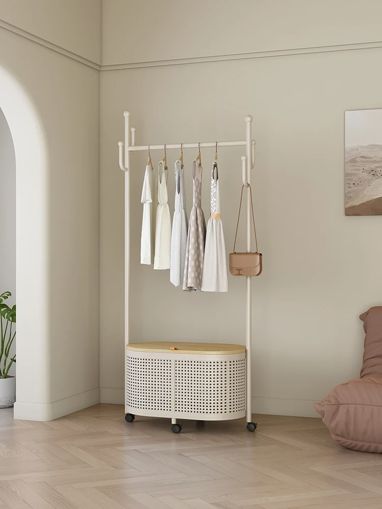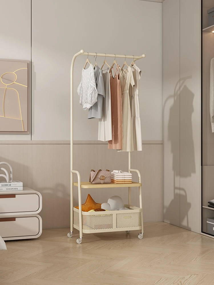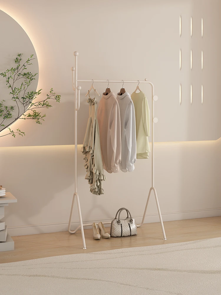 おしゃれなクリーム風の衣類ハンガー!寝室やリビングにぴったりな落地型ラック、夜のお洋服置きに最適な便利アイテム。整理整頓も簡単で、インテリアとしても映える!