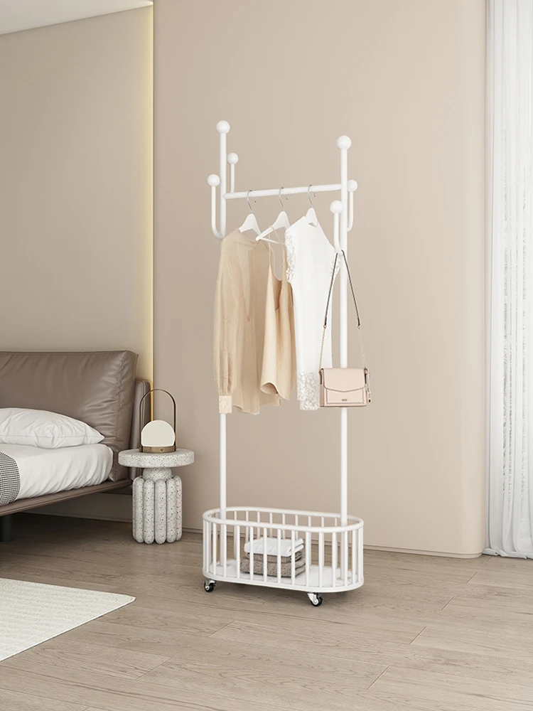 オリジナルデザインの衣類ハンガー、移動可能なキャスター付きで、寝室や民宿に最適なクリーム風コート&帽子ラック!スタイリッシュで機能的、おしゃれな収納を実現します。
