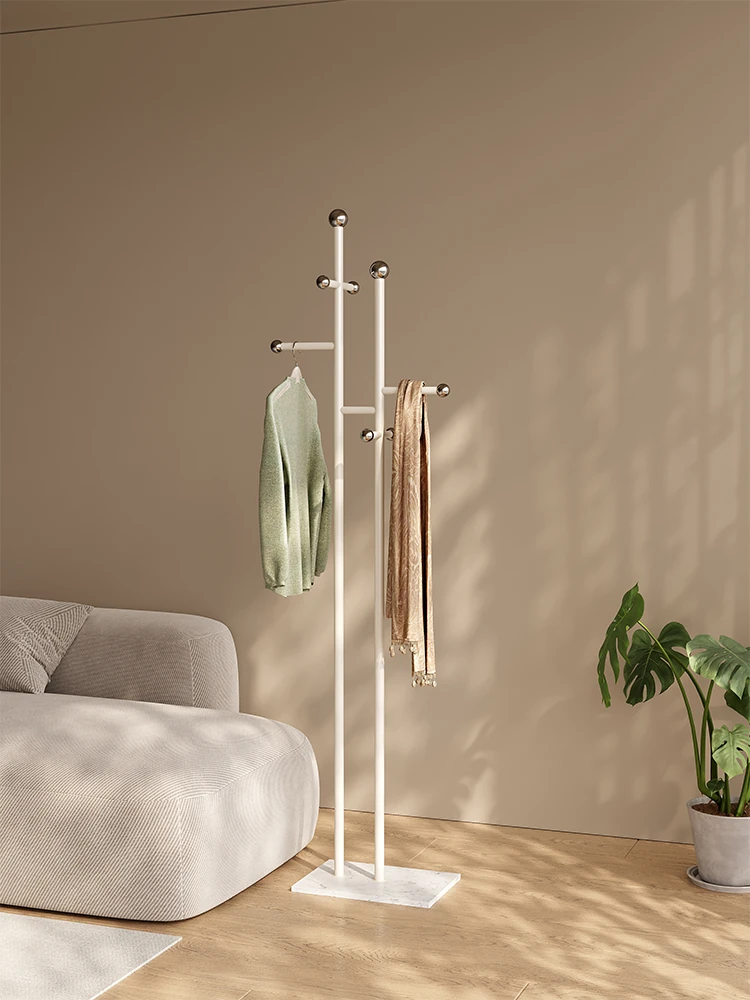 北欧風の寝室にぴったり!エレガントな立ち上がり式コートハンガー。シンプルでモダン、ラグジュアリーな大理石と金属の組み合わせで、リビングをスタイリッシュに演出します。おしゃれな服を美しく収納しましょう!