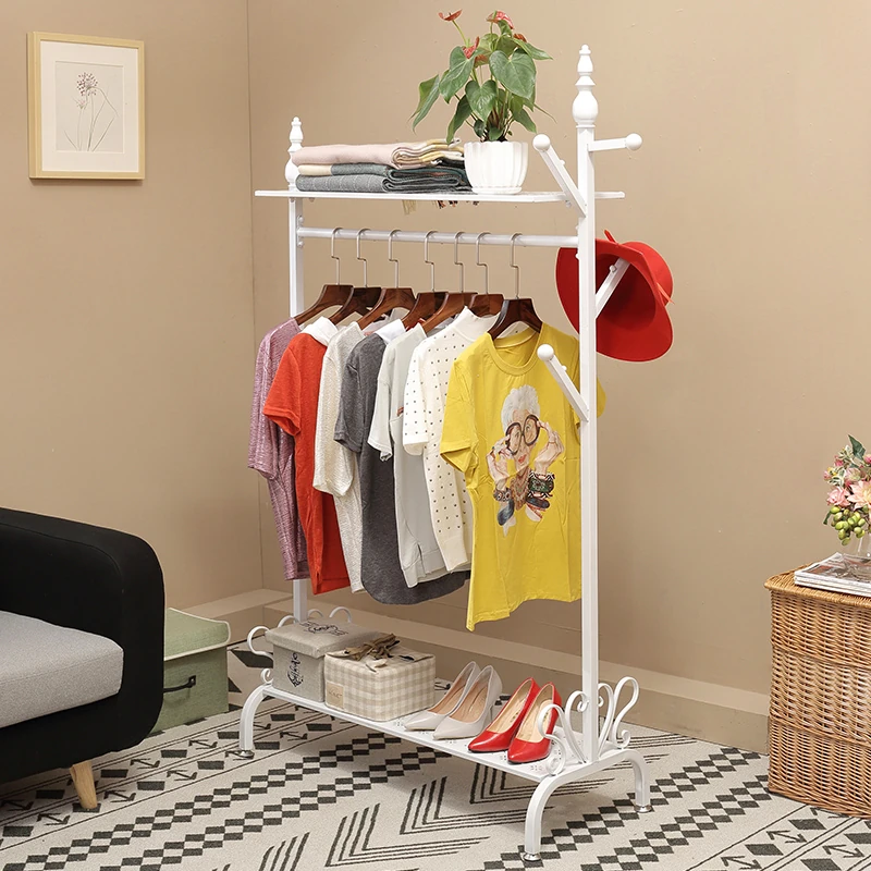 クリーム風のメタルハンガーラック - おしゃれな寝室にぴったり!衣類や帽子の収納に最適な落地型ハンガー、部屋をスッキリ整理して魅力的な空間を演出します。収納力抜群で便利なアイテムを今すぐ手に入れよう!