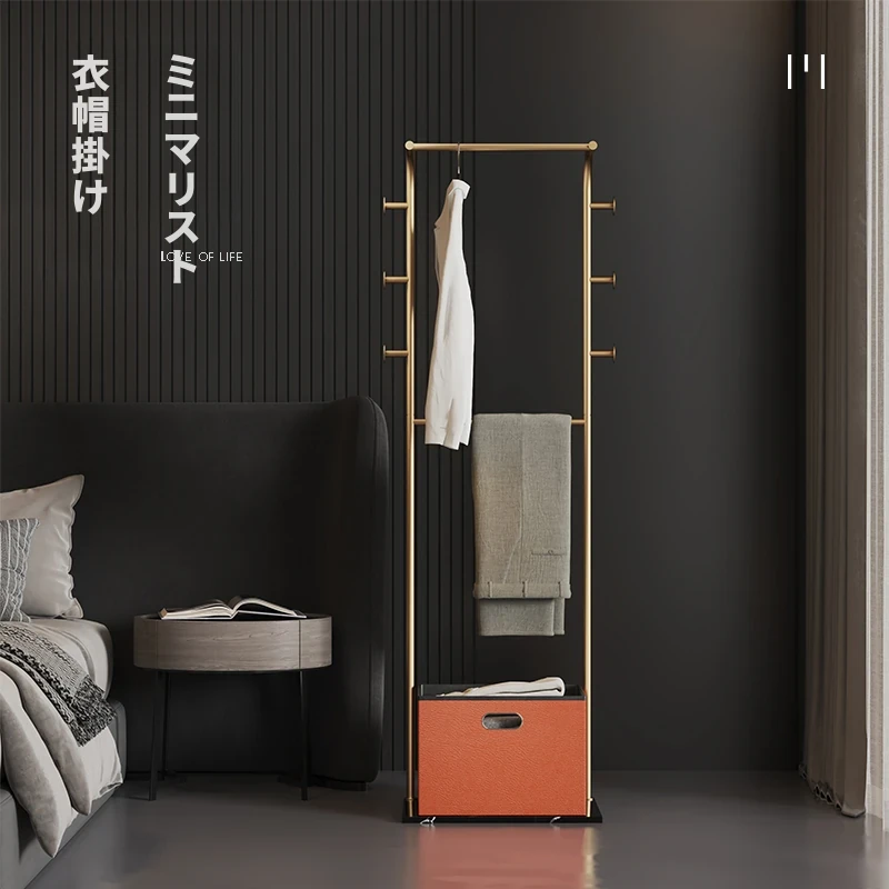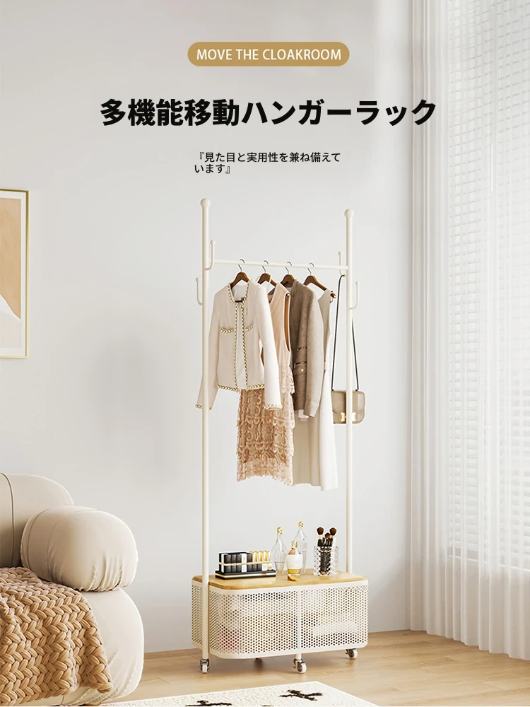 北欧スタイルの衣類ハンガー、収納ボックス付きのスタイリッシュな立式コートラック。おしゃれな寝室にぴったり!軽やかなデザインで、使いやすさも抜群。あなたの空間を美しく演出します!