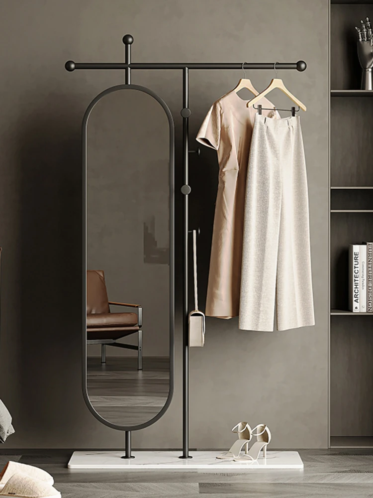 北欧風のエレガントな全身鏡付きコートハンガー!スタイリッシュで実用的な移動可能な衣服掛け。おしゃれな寝室を演出し、収納スペースを有効活用するアイテムです。