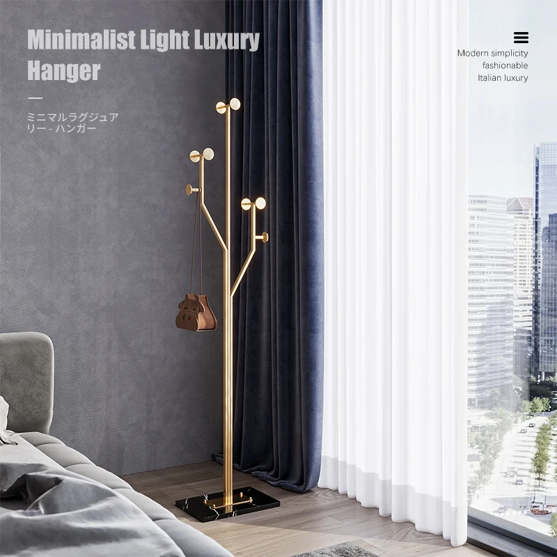 イタリアンスタイルのラグジュアリー衣類ハンガー - 寝室やリビングにぴったりの創造的なフロアスタンドコートラック。ホテルのような上質感を演出し、玄関やエントランスを美しく飾ります。おしゃれで実用的な掛け具で、毎日のコーディネートをサポート!