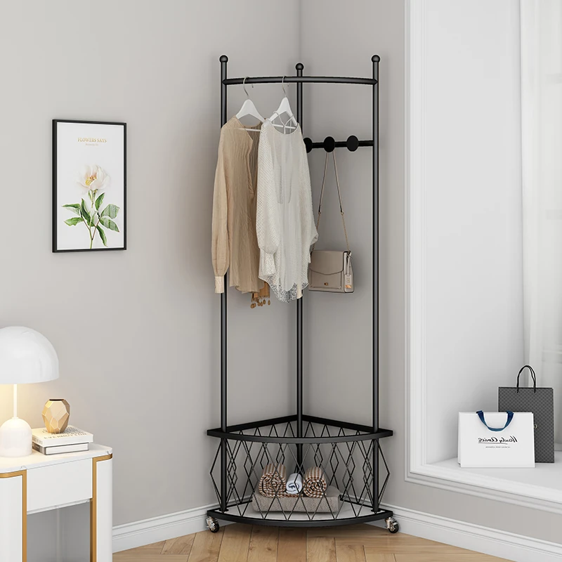北欧スタイルのラグジュアリーコーナーコートラック - 寝室に最適なフロアスタンドハンガー、洗練されたデザインで収納力抜群!角スペースを有効活用して、スタイリッシュにお部屋を整理整頓。