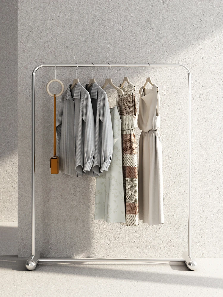 ステンレス製ハンガーラック おしゃれな北欧スタイル 軽やかなシングルポール デザイン性抜群で、寝室やバルコニーにぴったり!シンプルで使いやすいコートハンガーで、インテリアを格上げ!