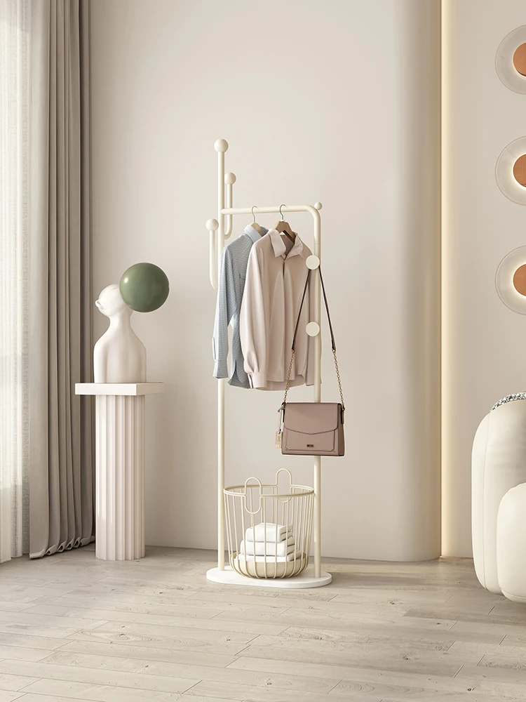 Elegant Cream Floor Coat Rack - Stylish Iron Clothes Hanger for Bedroom, Home Use - Creative Artistic Hat and Coat Stand