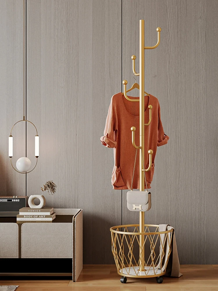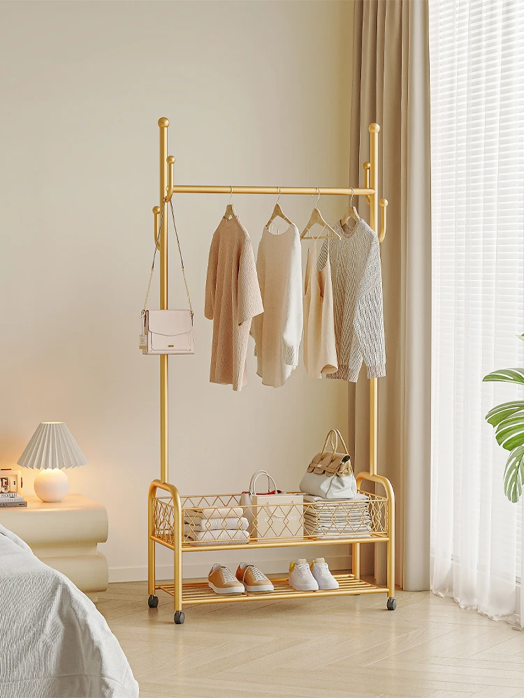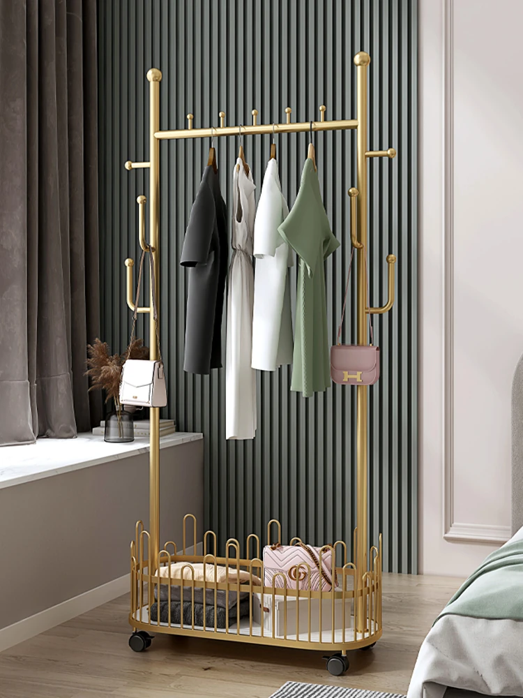 Nordic Style Rolling Floor Coat Rack - Multifunctional Lightweight Luxury Clothes Storage Organizer for Bedroom and Living Room