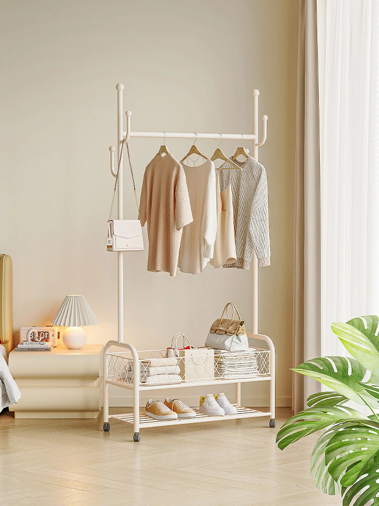 Creamy Wind Free-Standing Clothes Rack - Stylish and Functional Bedroom Solution for Evening Outfit Storage - Luxury Yet Affordable Mobile Coat Stand for Home Use