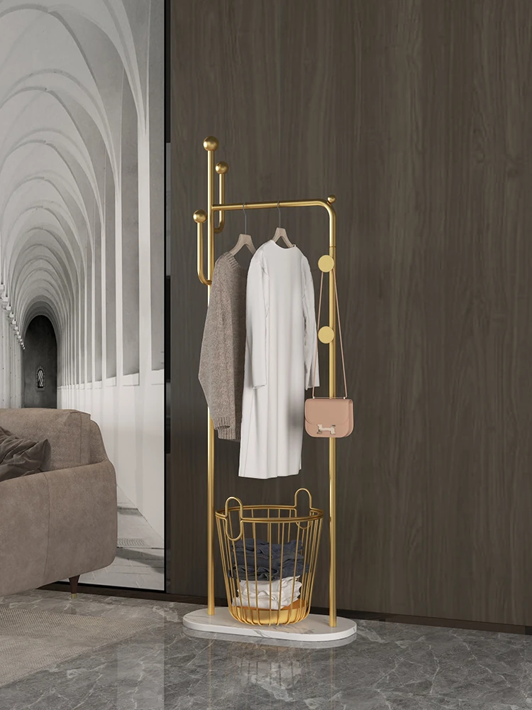 Nordic Style Floor Coat Rack - Elegant Marble Design for Bedroom Storage, Chic and Functional Clothes Hanger, Perfect for Modern Homes