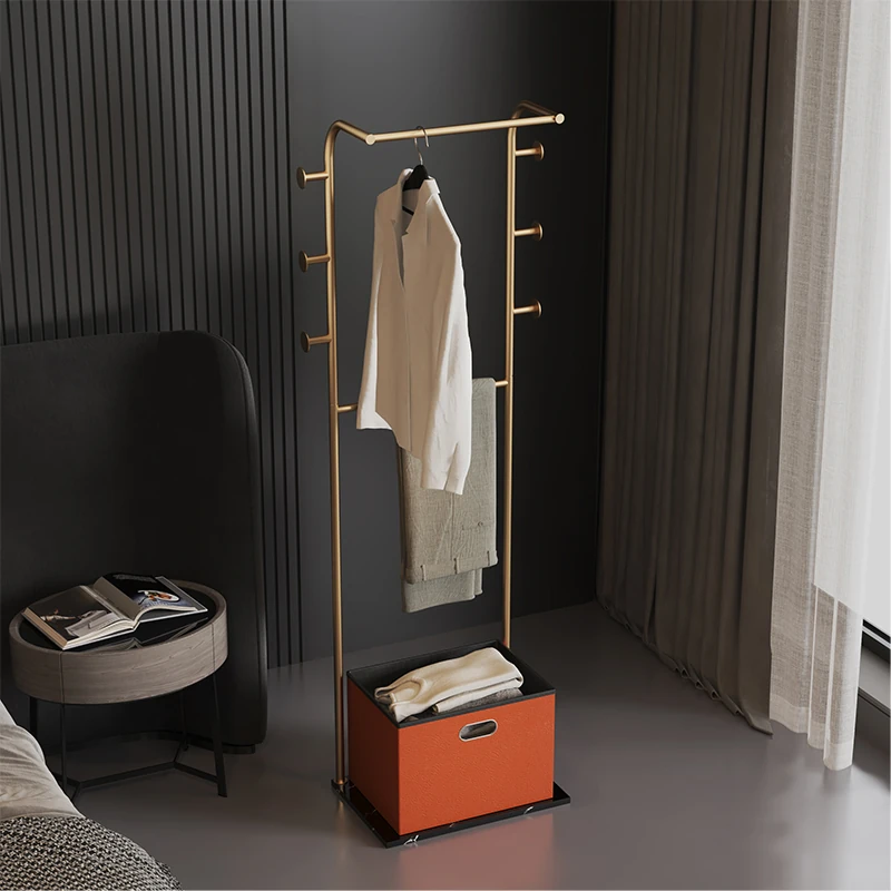 Nordic Style Freestanding Clothes Rack with Storage Box - Creative Metal Coat Hanger for Bedroom, Hotel, and Airbnb. Perfect for Organizing Your Space!