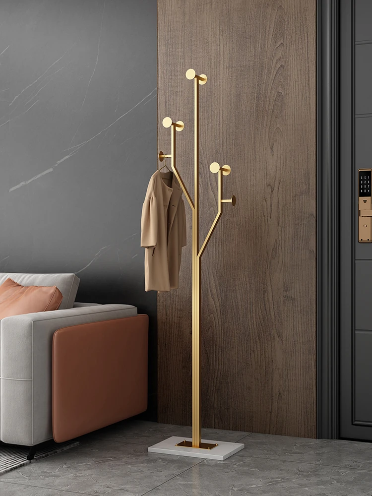 Modern Minimalist Freestanding Marble Coat Rack - Scandinavian Style, Brass Accent, Creative Clothes Hanger for Bedroom - Elevate Your Space with Elegance and Functionality!