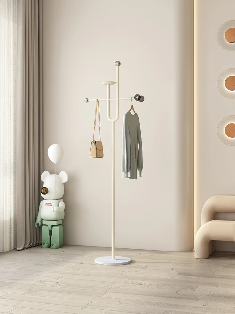 Elegant Cream-Colored Freestanding Clothes Rack - Stylish Coat Hanger for Home Bedrooms and Hotels, Creative Art Design for a Sophisticated Touch