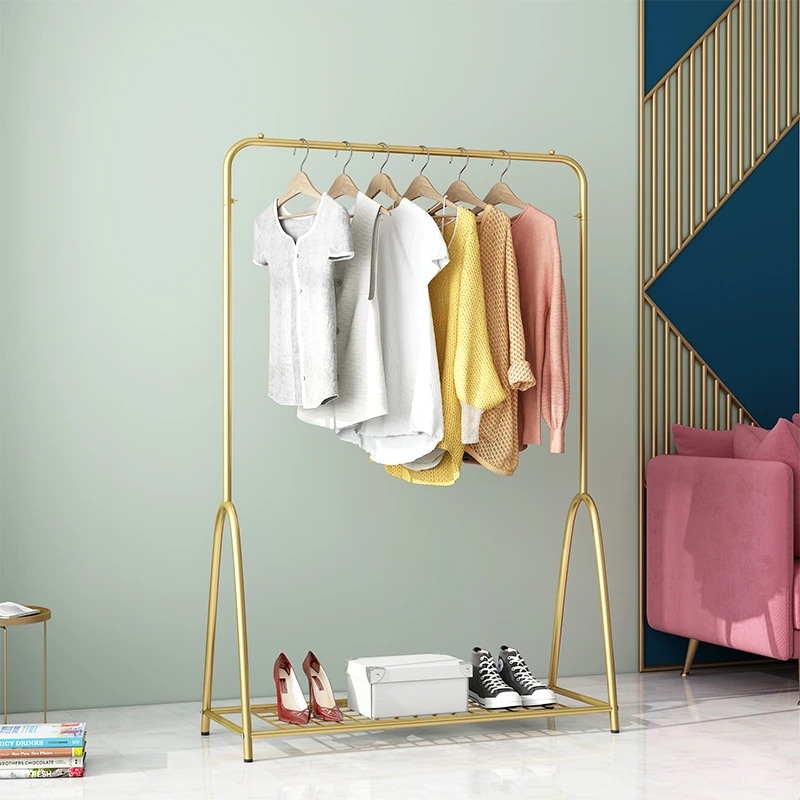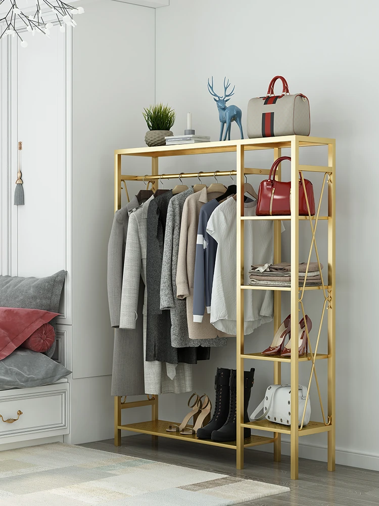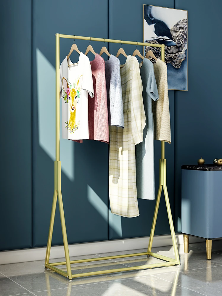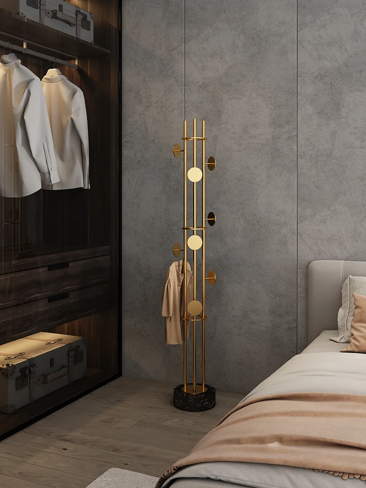 Elegant Gold Floor-Standing Coat Rack - Nordic Style Wardrobe Organizer for Bedroom Storage - Chic and Functional Clothes Hanger for Your New Home