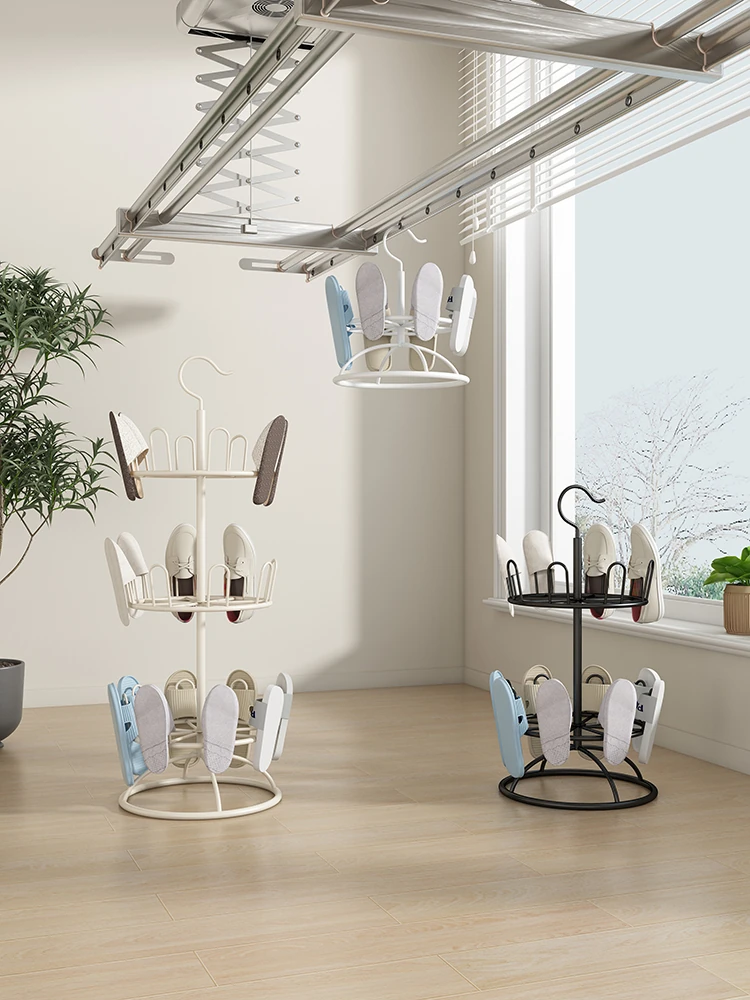 Creamy Breeze Drying Shoe Rack - Multi-Layer Storage Solution with Hooks for Home, Outdoor Balcony, and Indoor Entryway - The Ultimate Shoe Organizer!