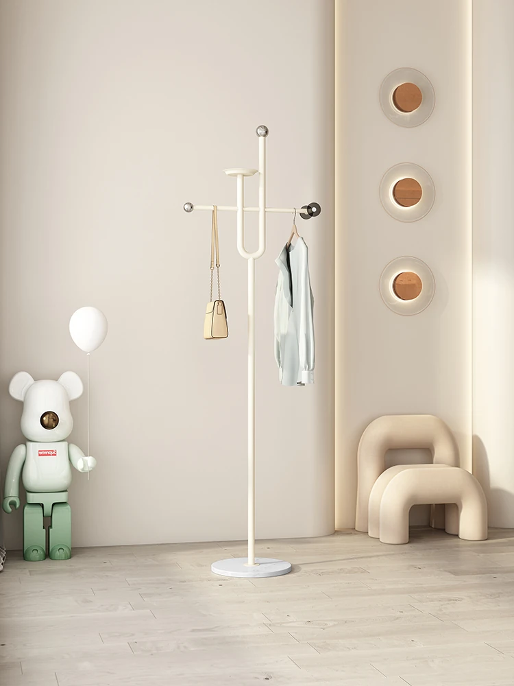 Elegant Cream-Colored Freestanding Iron Clothes Rack - Modern Artistic Coat Stand for Bedroom and Home Use, Perfect for Hotels and Creative Spaces