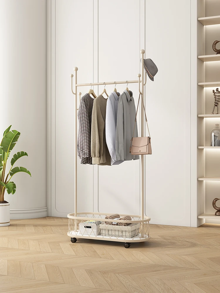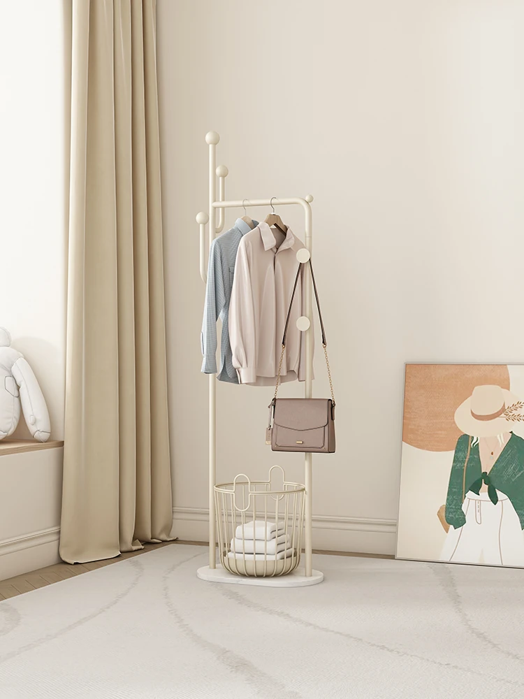Creamy Floor-standing Clothes Rack - Stylish Bedroom Storage for Coats and Hats, Perfect for Placing Clothes by the Bed at Night! Ideal Home Organizer for a Chic Look!