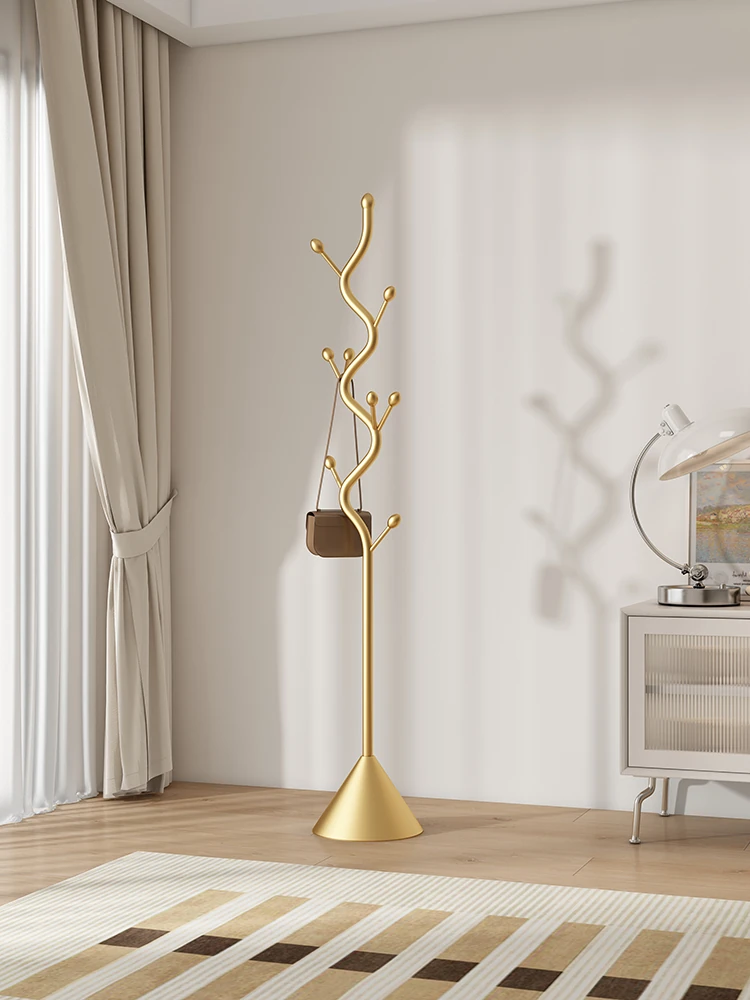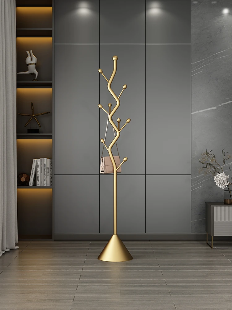 Elegant Gold Floor Coat Rack for New Homes - Stylish Nordic Minimalist Clothes Hanger for Bedroom - Modern and Chic Design