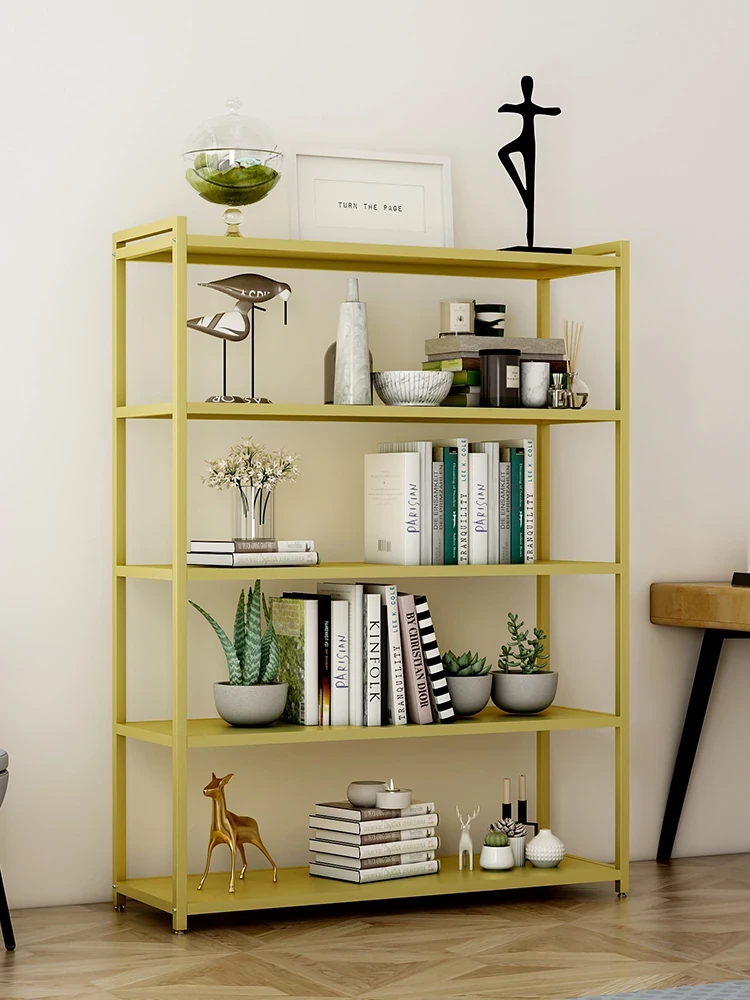 Nordic Iron Floor Shelf - Creative Corner Bookshelf for Living Room & Bedroom, Elegant Gold Decor & Storage Bedside Rack