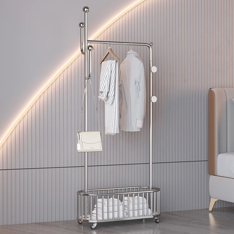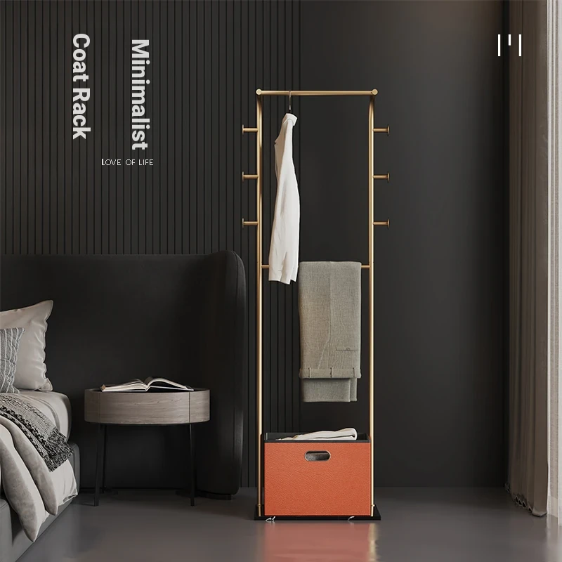 Italian Chic Floor Clothes Rack with Basket - Stylish Bedroom Organizer and Entryway Coat Stand for Home Storage Solutions