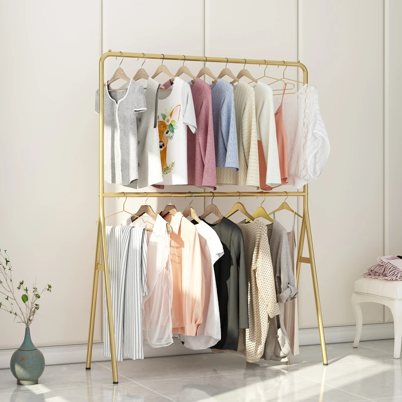 Double-Layer Freestanding Clothes Rack - Minimalist Chic Hanger for Bedroom, Home Use, and Boutique Display - Perfect for Drying and Showcasing Your Fashion Collection