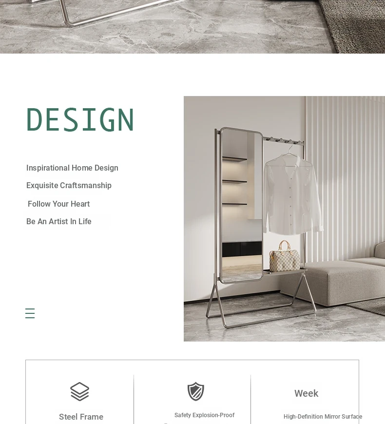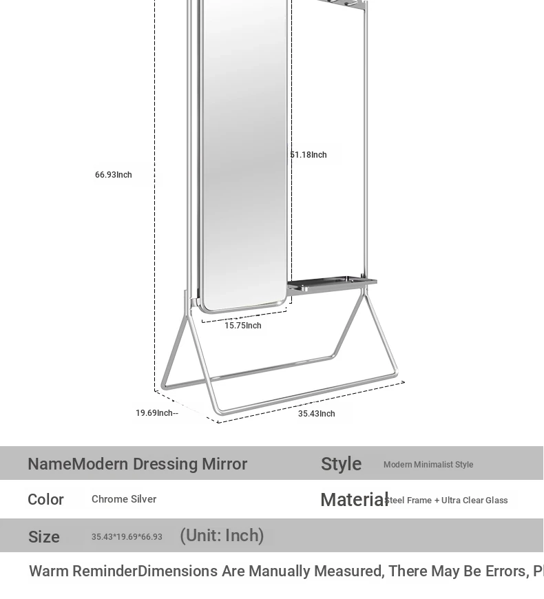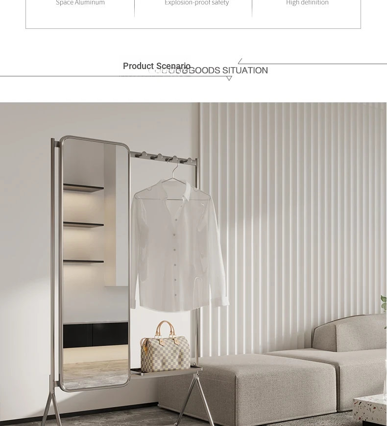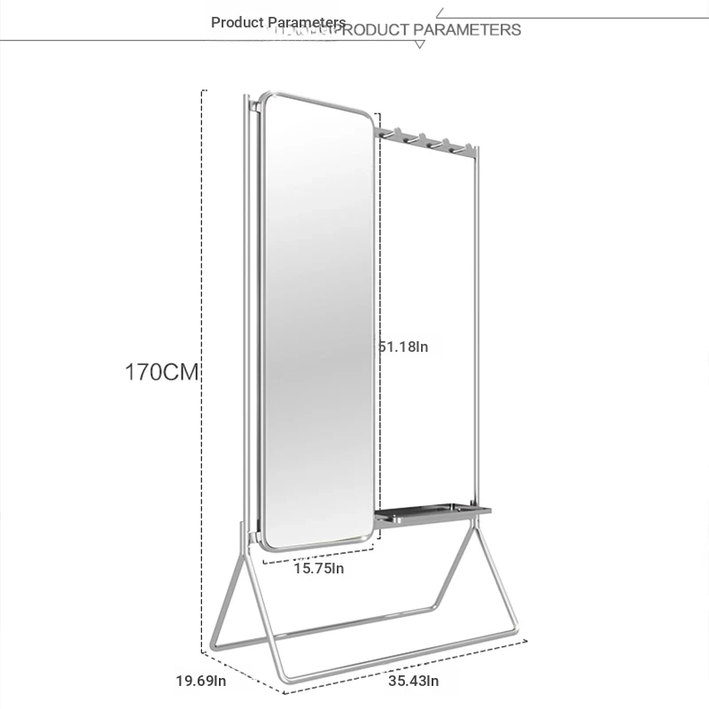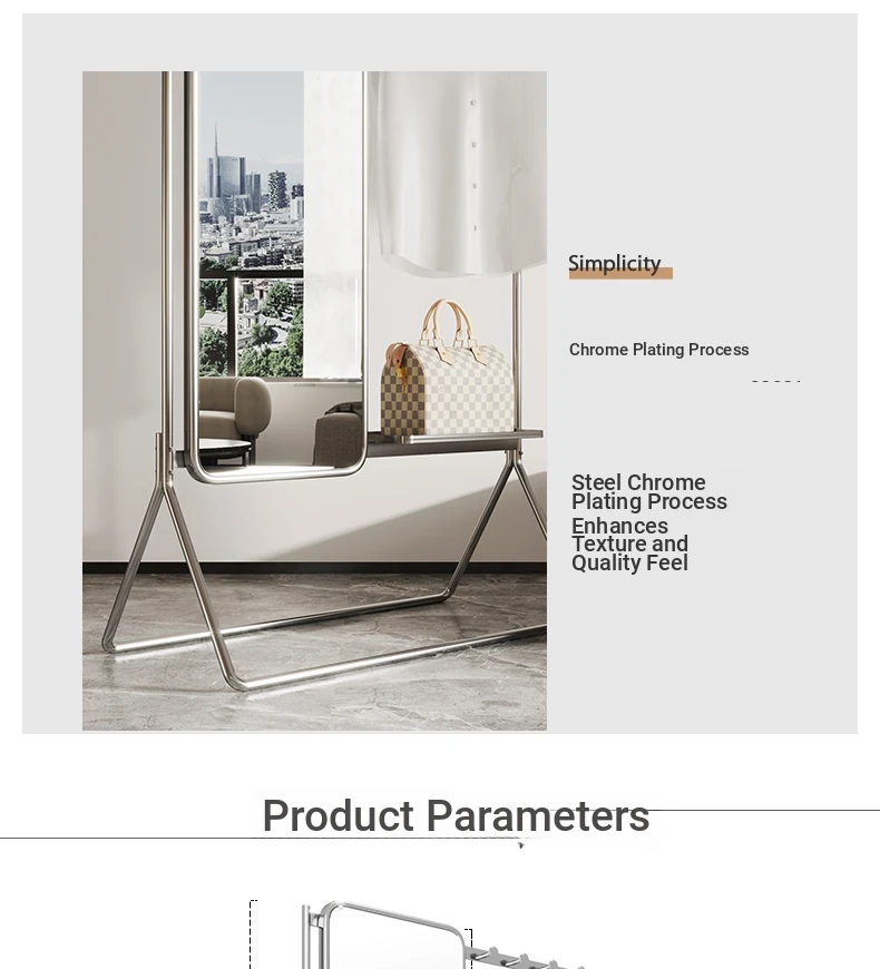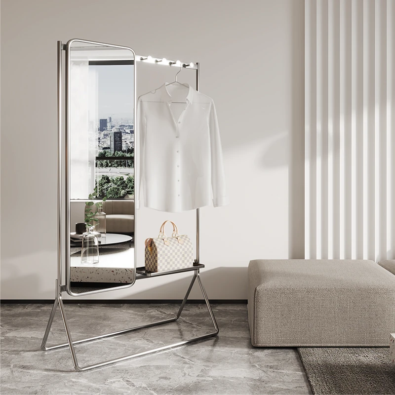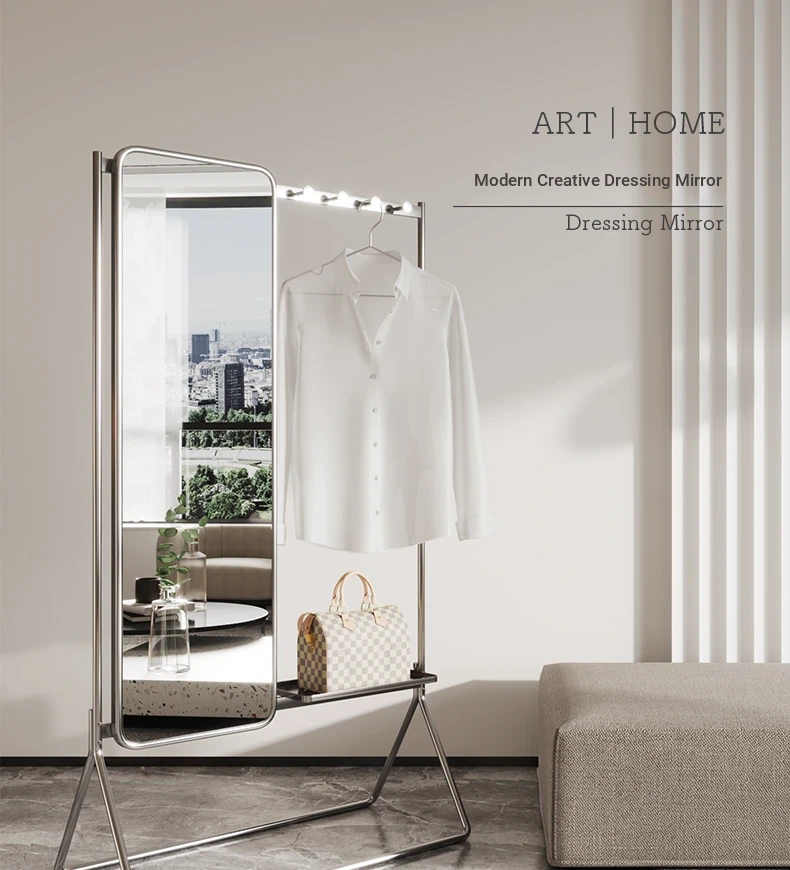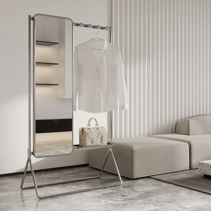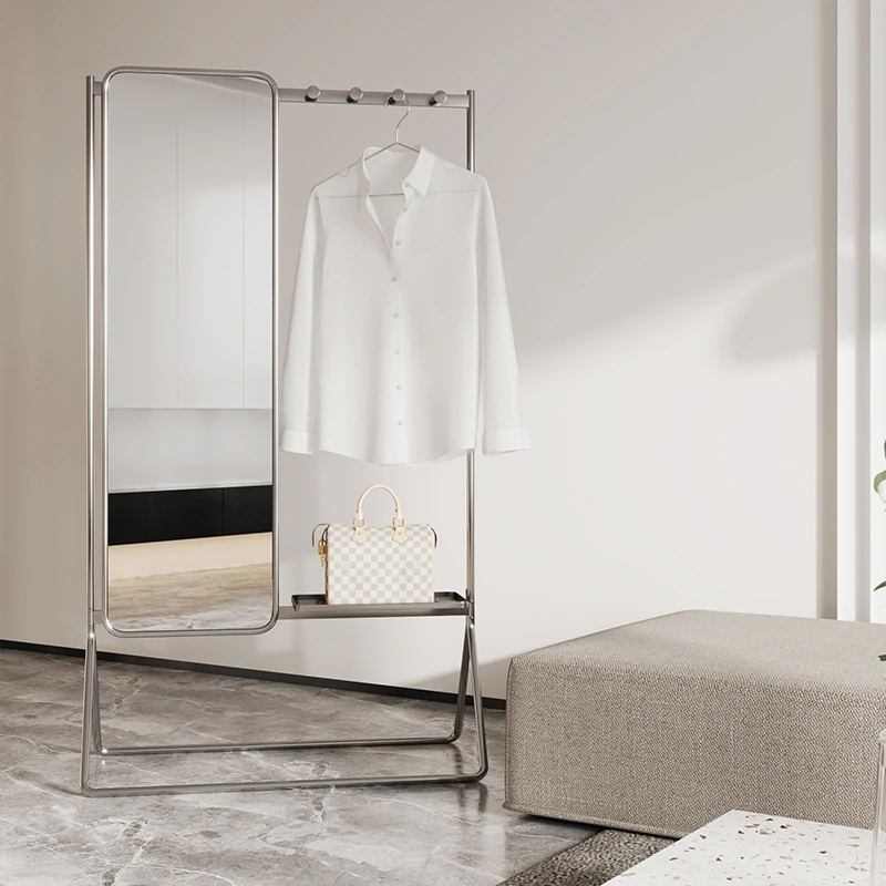 Nordic Chrome Coat Rack and Full-Length Dressing Mirror Combo - Modern Floor Mirror and Clothing Hanger for Bedroom Use