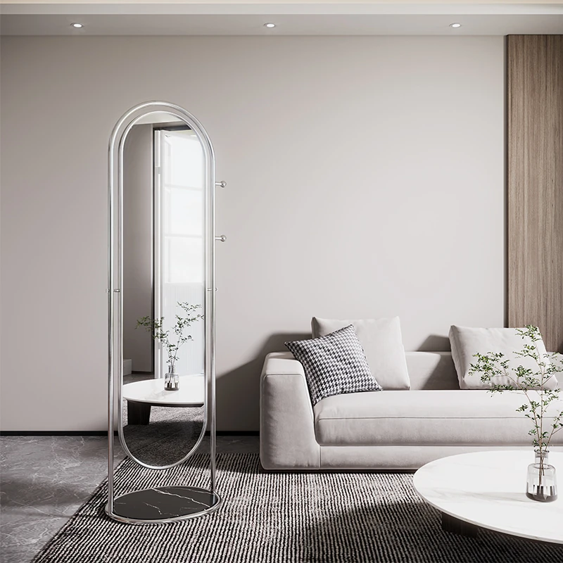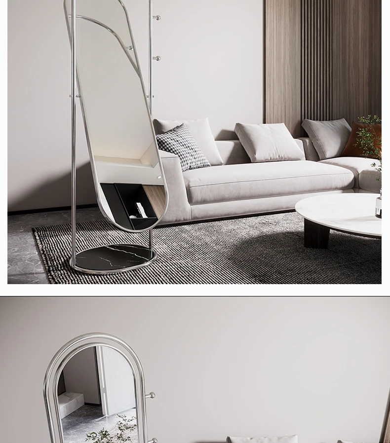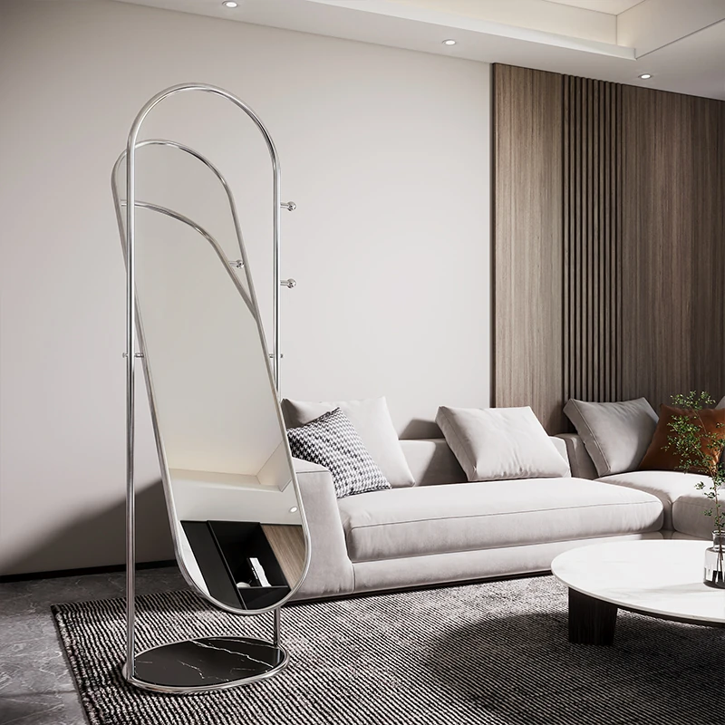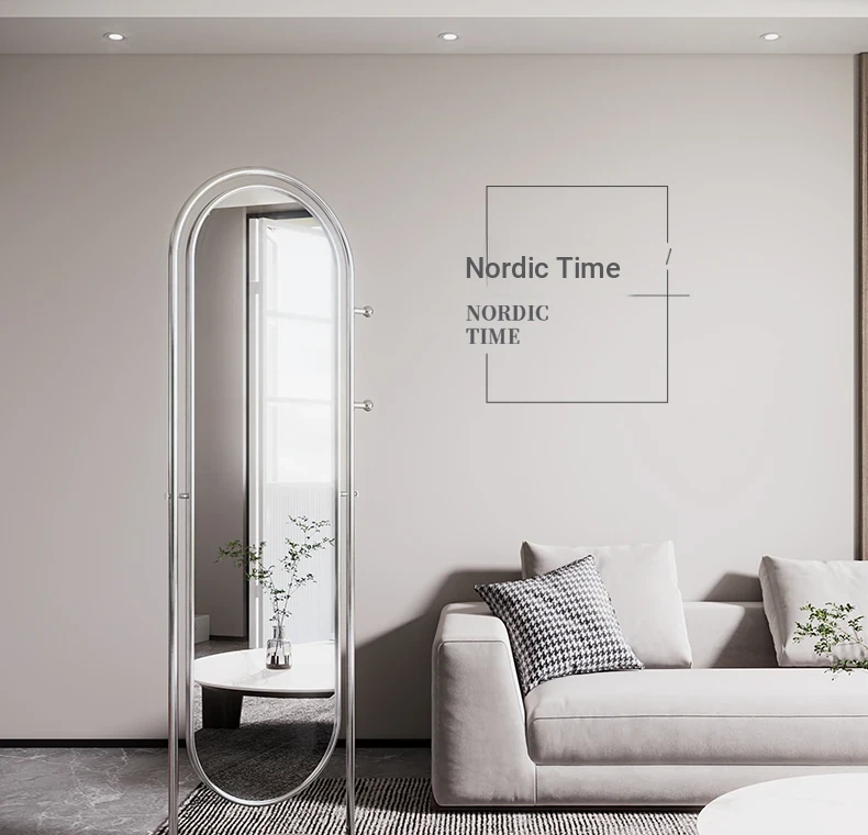 Nordic Minimalist Full-Length Rotating Dressing Mirror with Integrated Clothes Rack - Stylish and Functional Home Wardrobe Companion