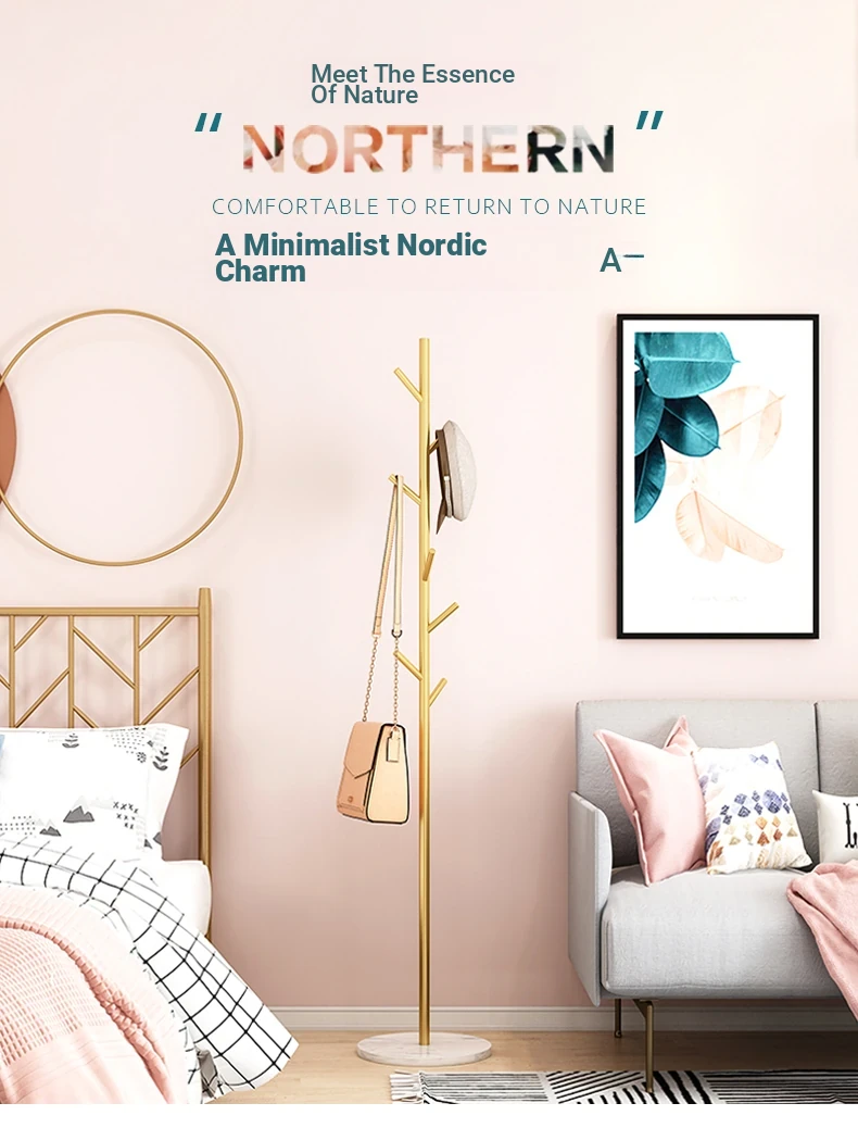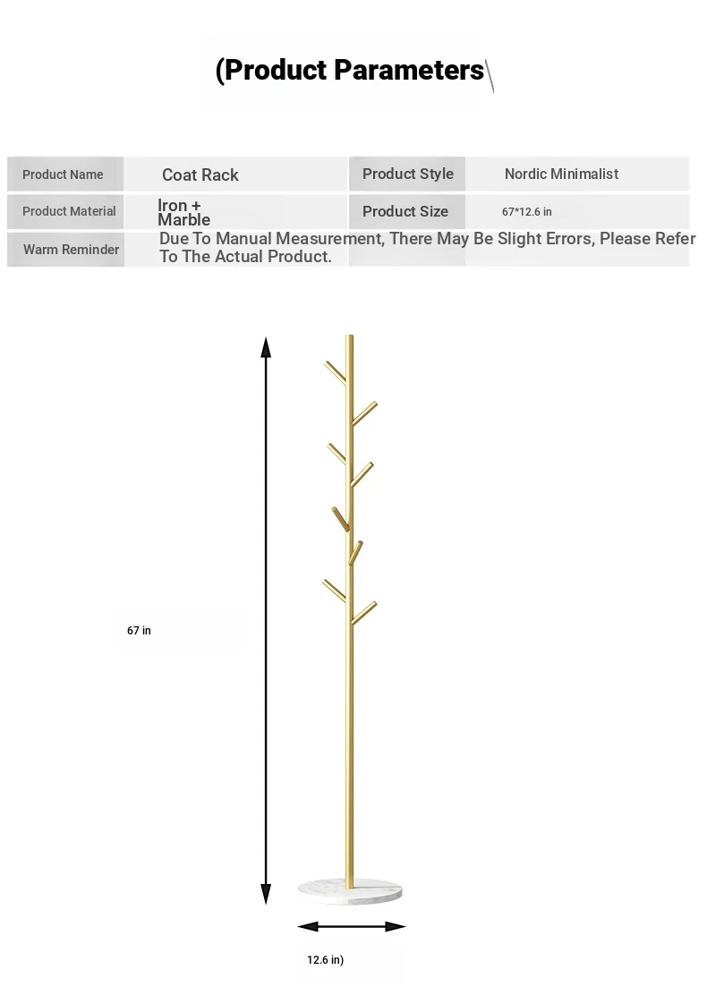 Modern Marble Floor Coat Rack - Minimalist Metal Clothing Organizer for Bedroom, Nordic Style Easy-to-Use Hanger for Home Storage