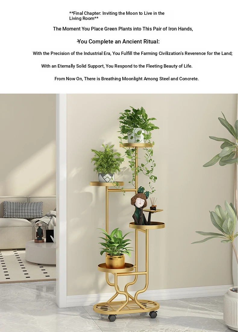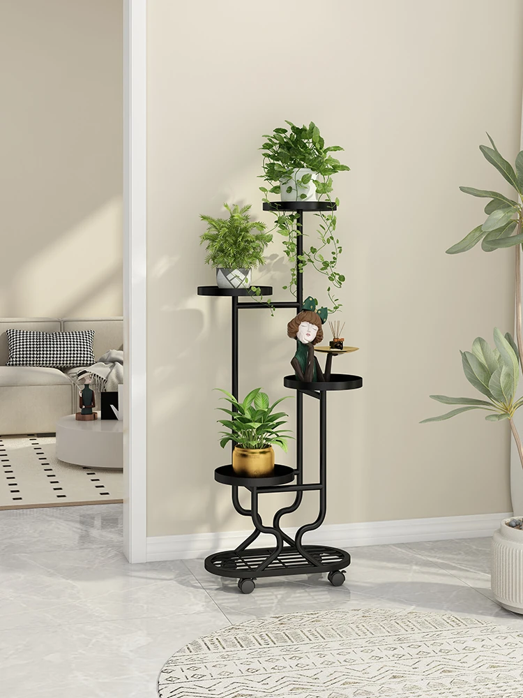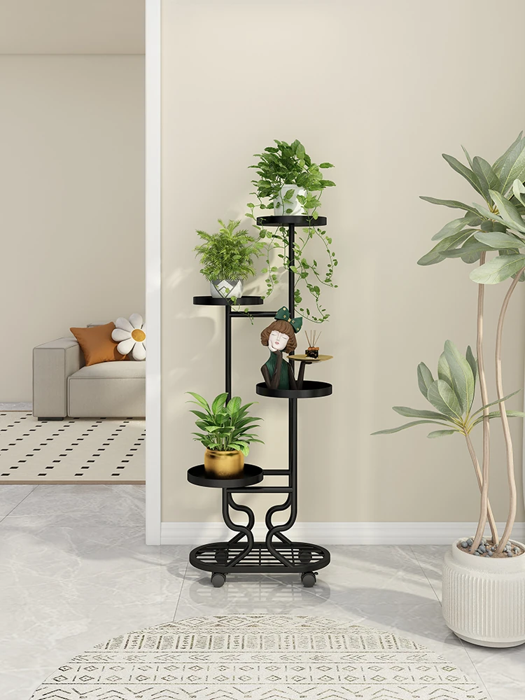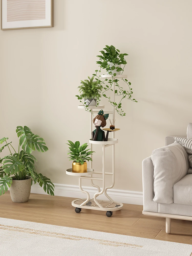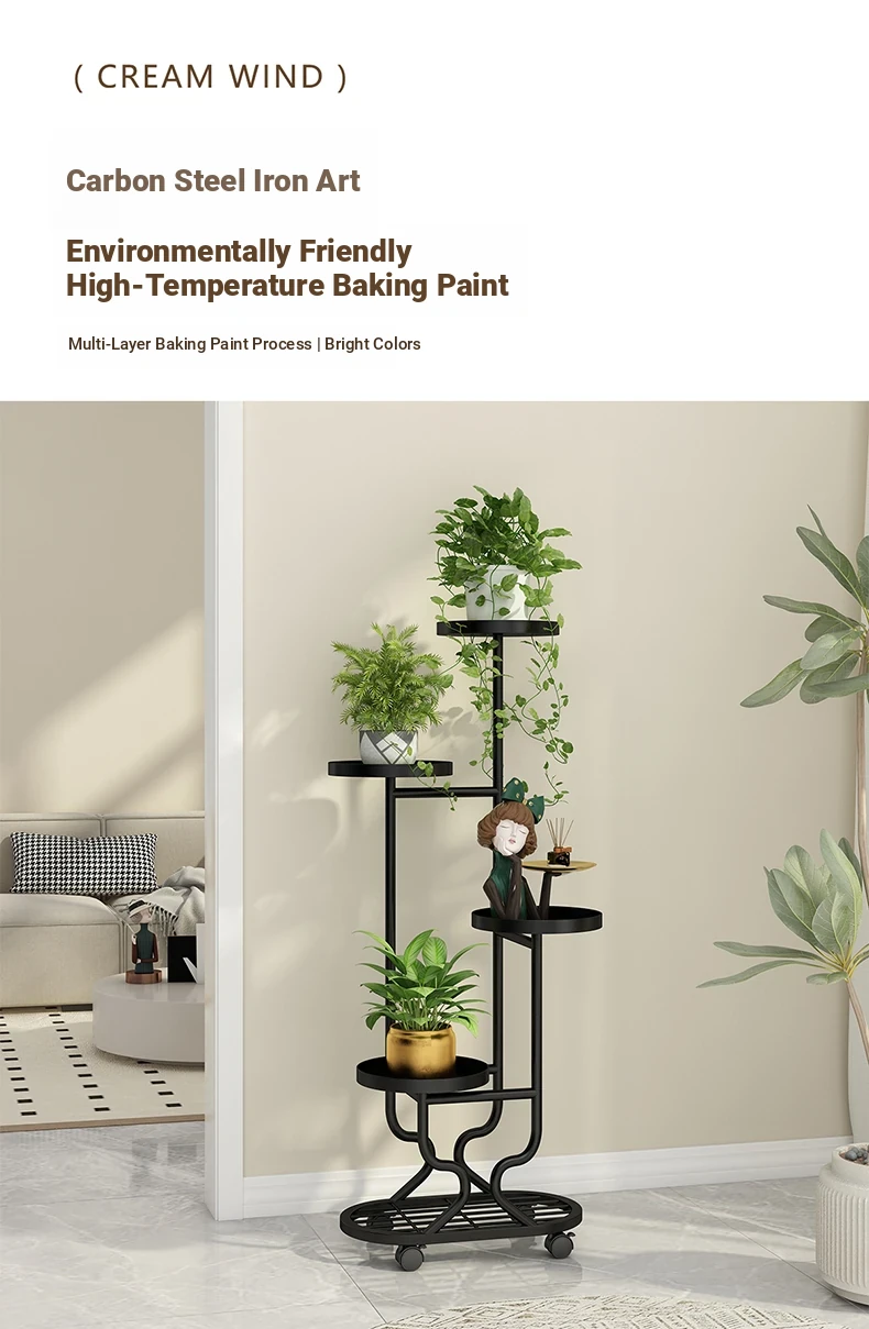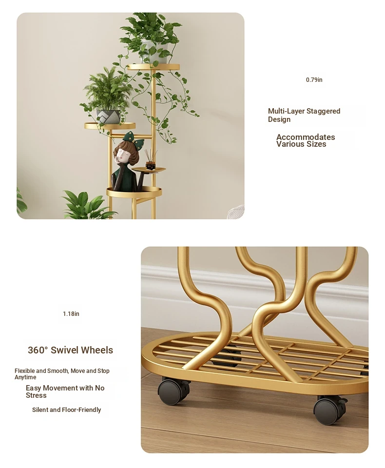 リビングに最適な多層フラワースタンド!移動可能なアイアン製プランターラックで、バルコニーやお部屋をおしゃれに演出。多肉植物も美しくディスプレイできる、便利でスタイリッシュな収納アイテムです!