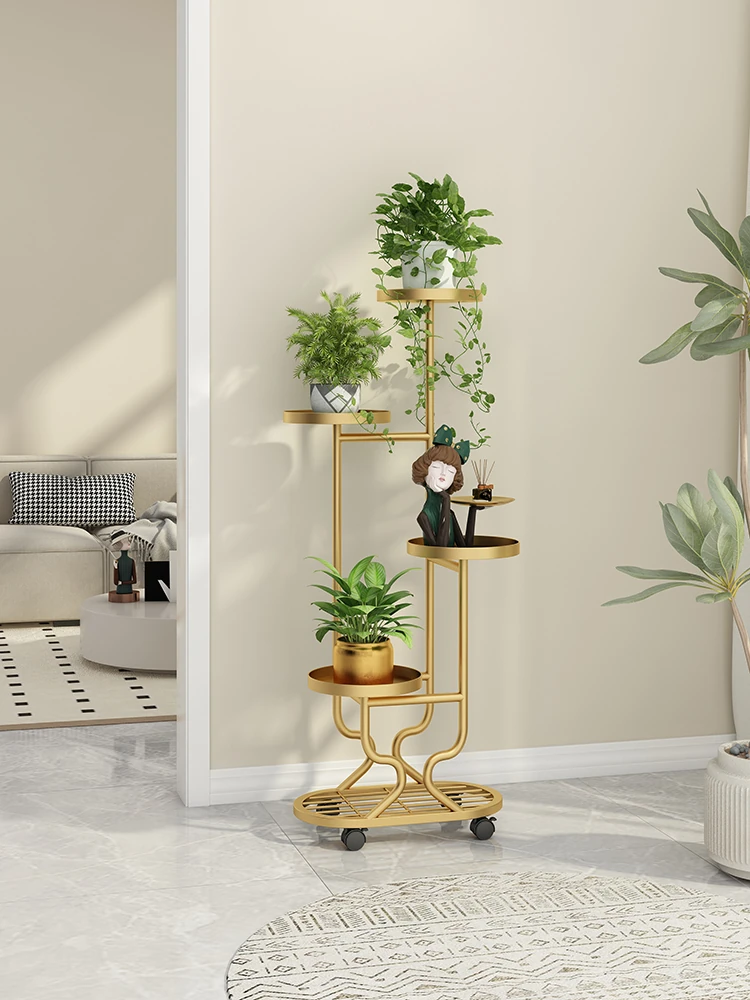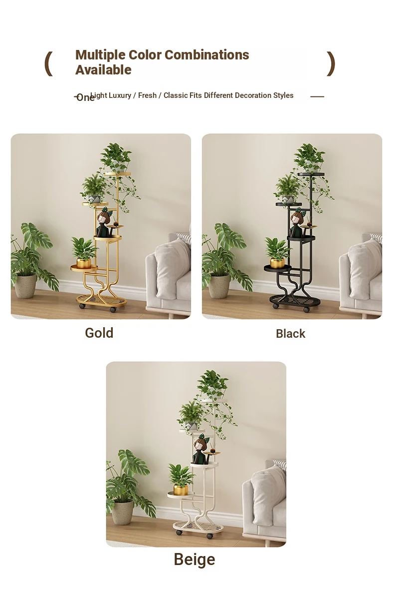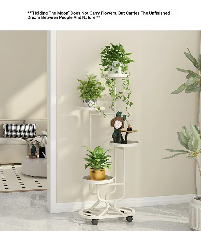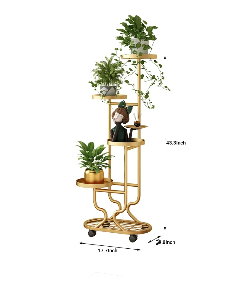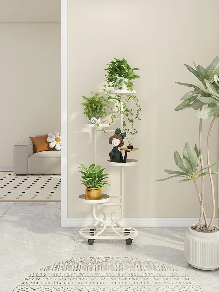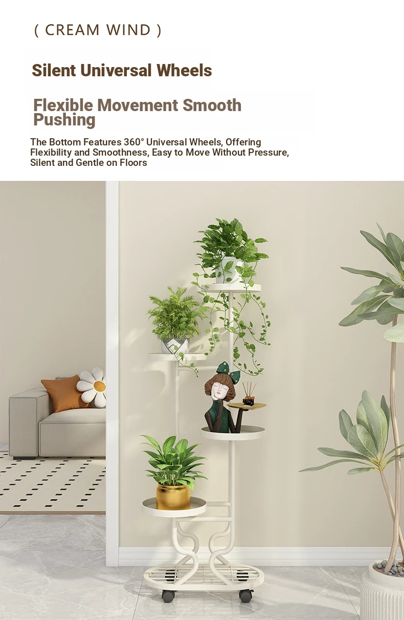 リビングに最適な多層フラワースタンド!移動可能なアイアン製プランターラックで、バルコニーやお部屋をおしゃれに演出。多肉植物も美しくディスプレイできる、便利でスタイリッシュな収納アイテムです!