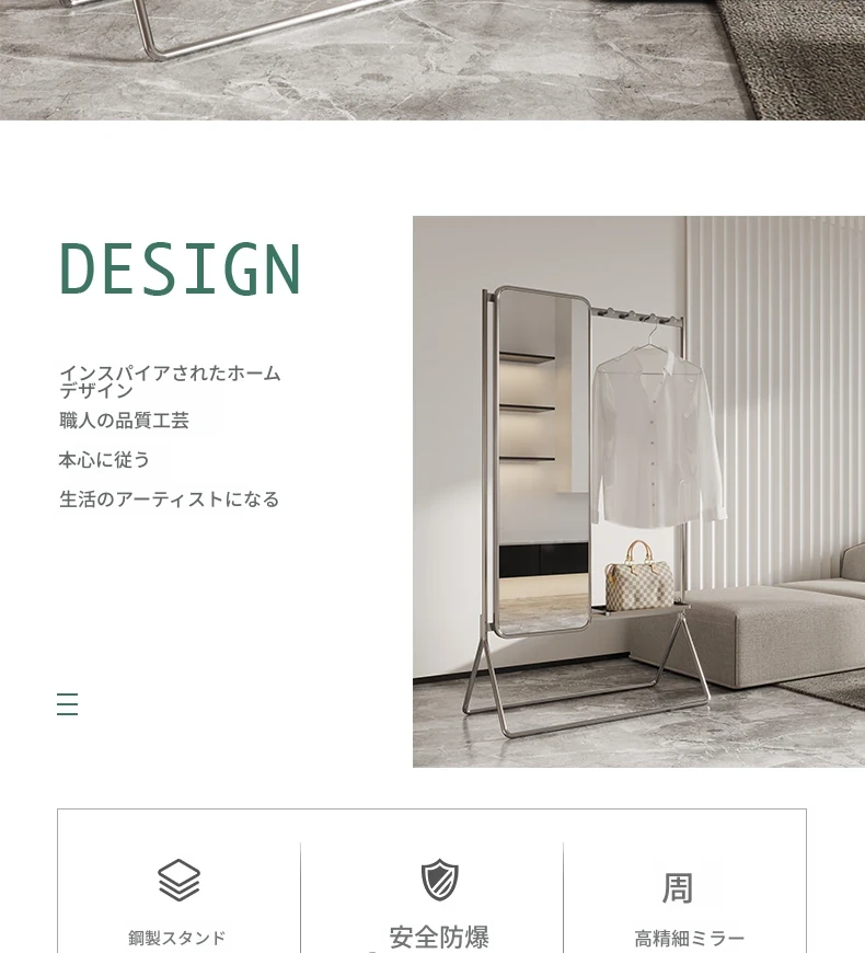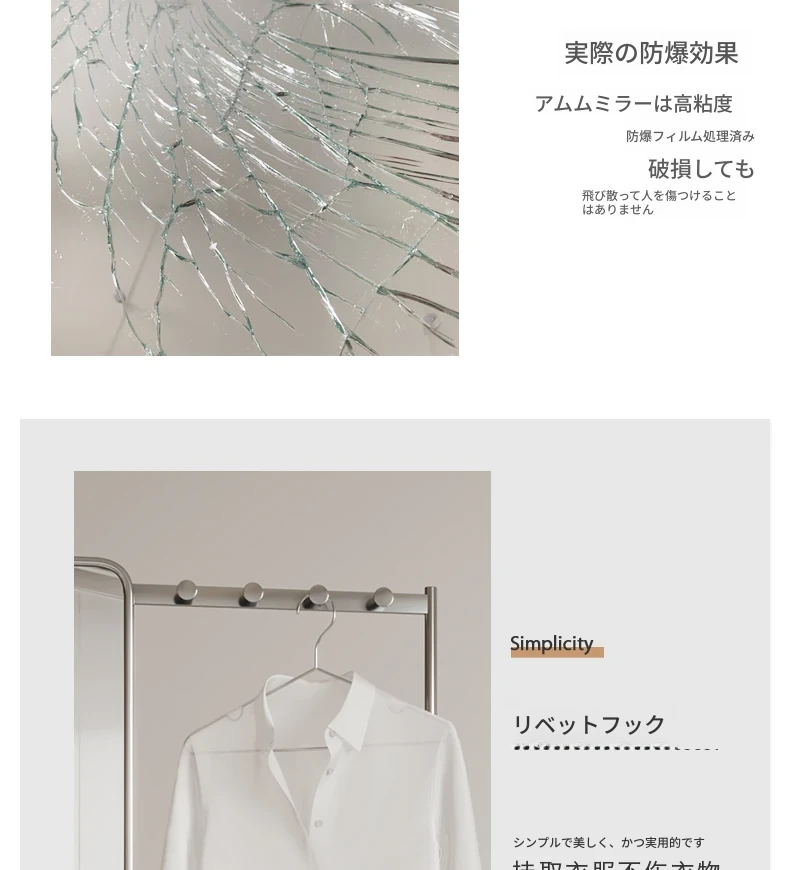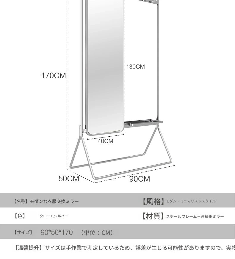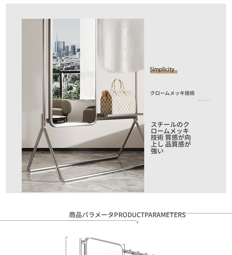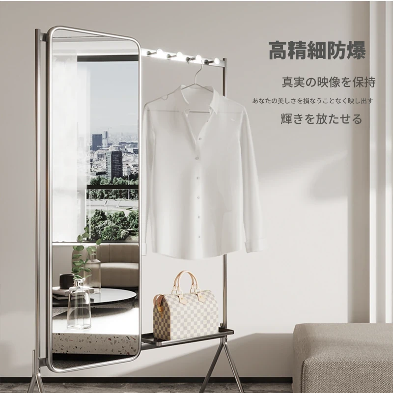 北欧スタイルのクロムコート衣類ハンガー一体型全身鏡モダン寝室用フロアスタンドハンガー|スタイリッシュなデザインで、機能性と美しさを兼ね備えたアイテム!おしゃれな空間を演出します。