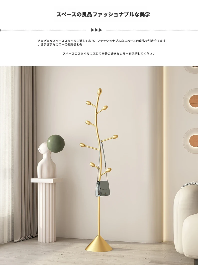 スタイリッシュな衣類ラック - シンプルでコンパクト、寝室やリビングに最適な落地式コートハンガー。玄関や入口にぴったりの機能的な収納ソリューション!